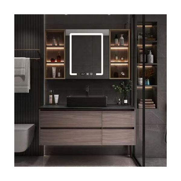 Customized Color Bathroom Vanities Modern LED Mirror Cabinet and Sink Collection Images |